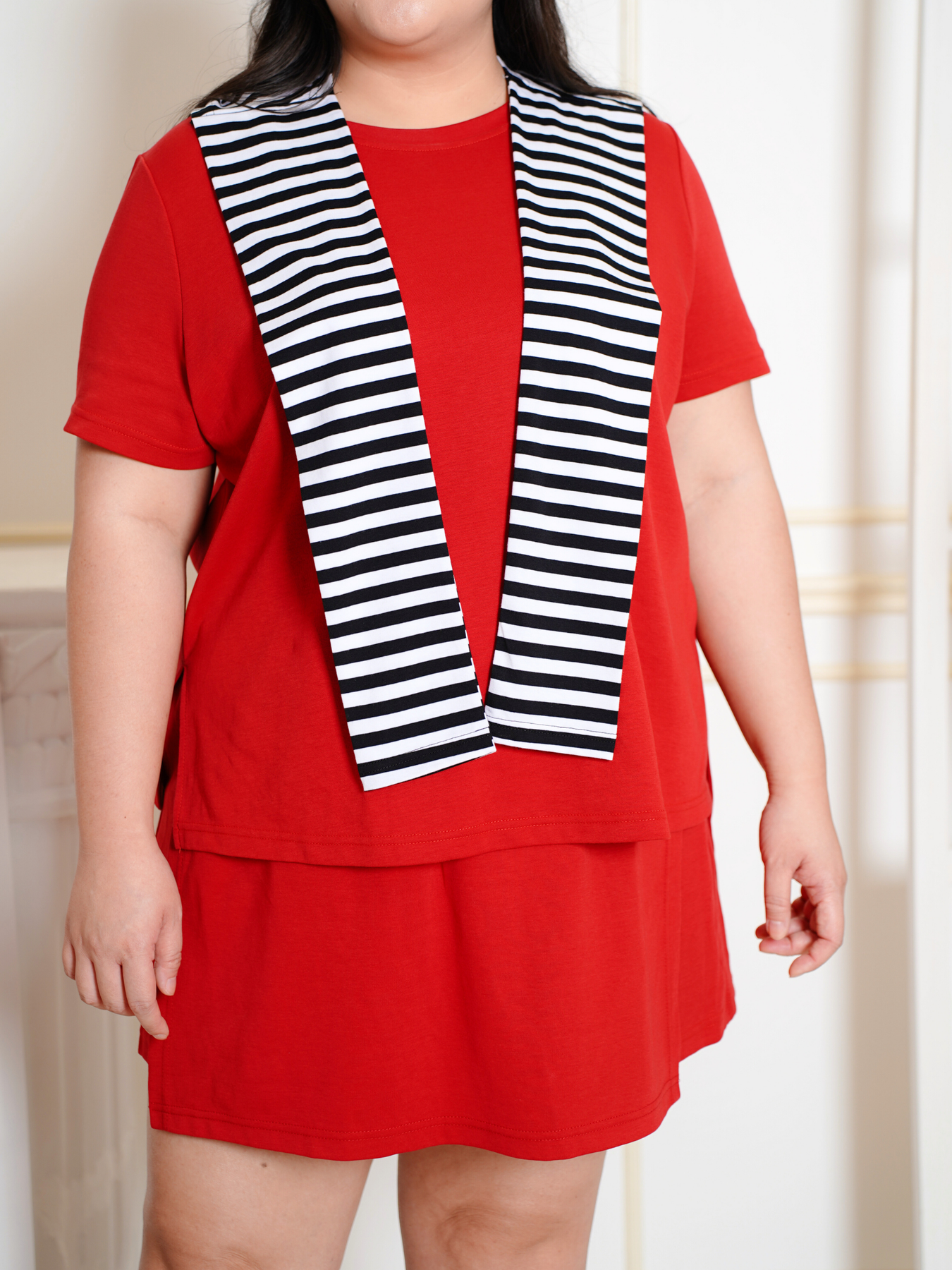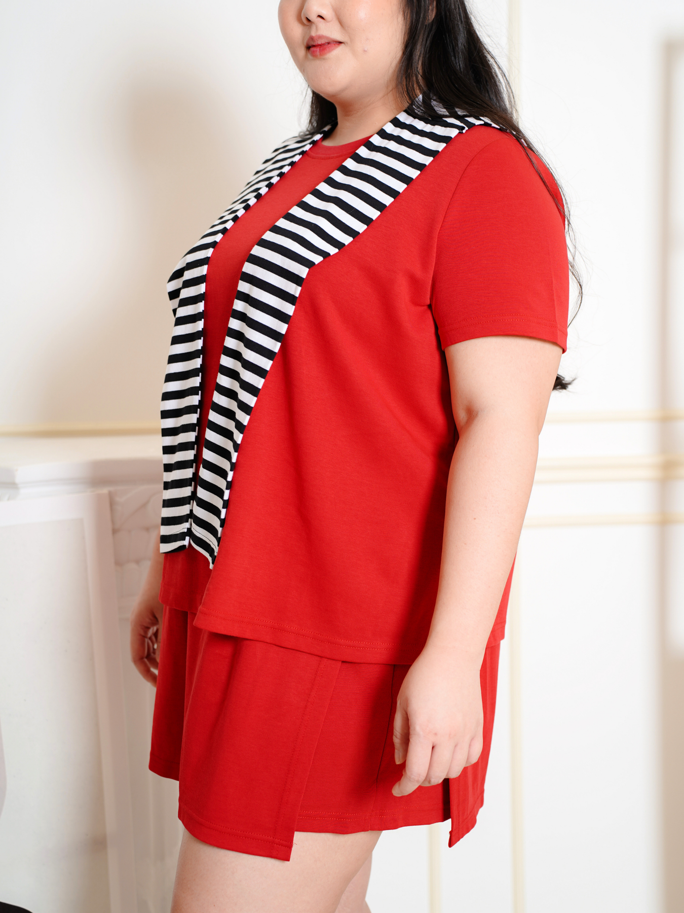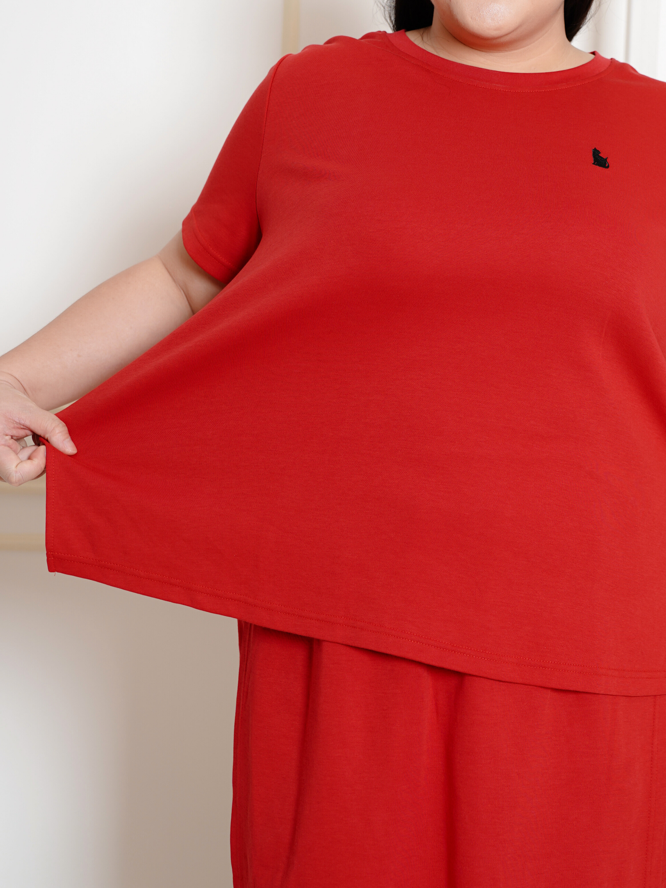 Model (wearing pink and black) wears 2XL.