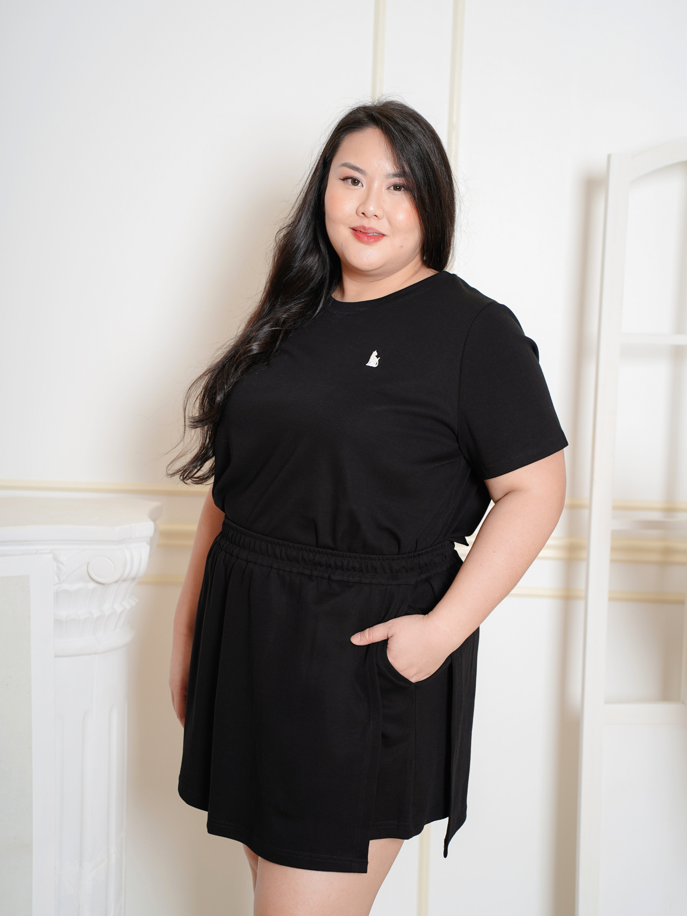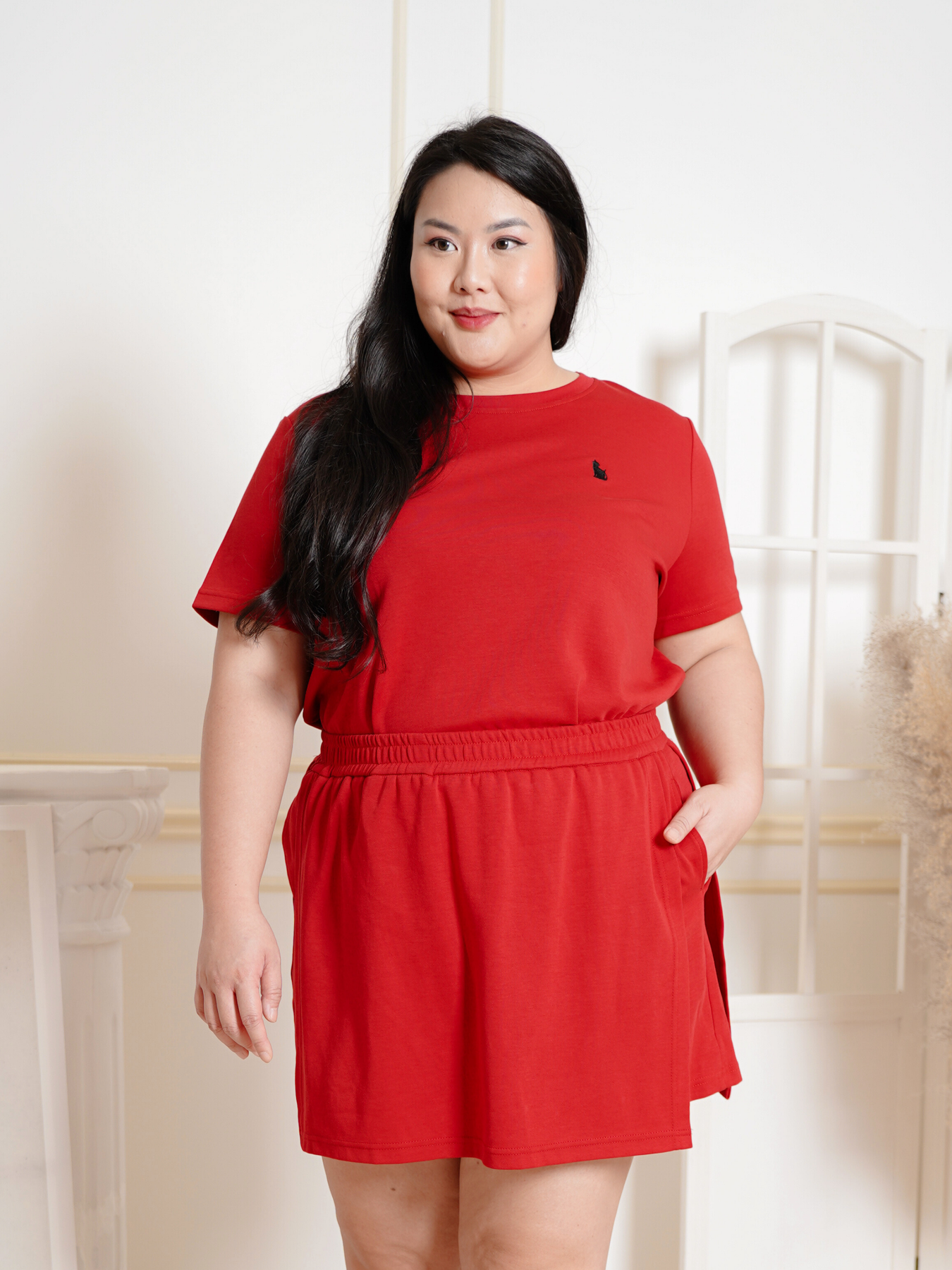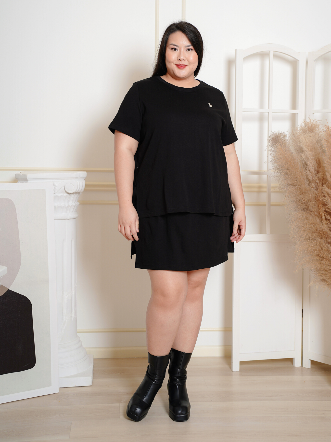 Model (wearing pink and black) wears 2XL.