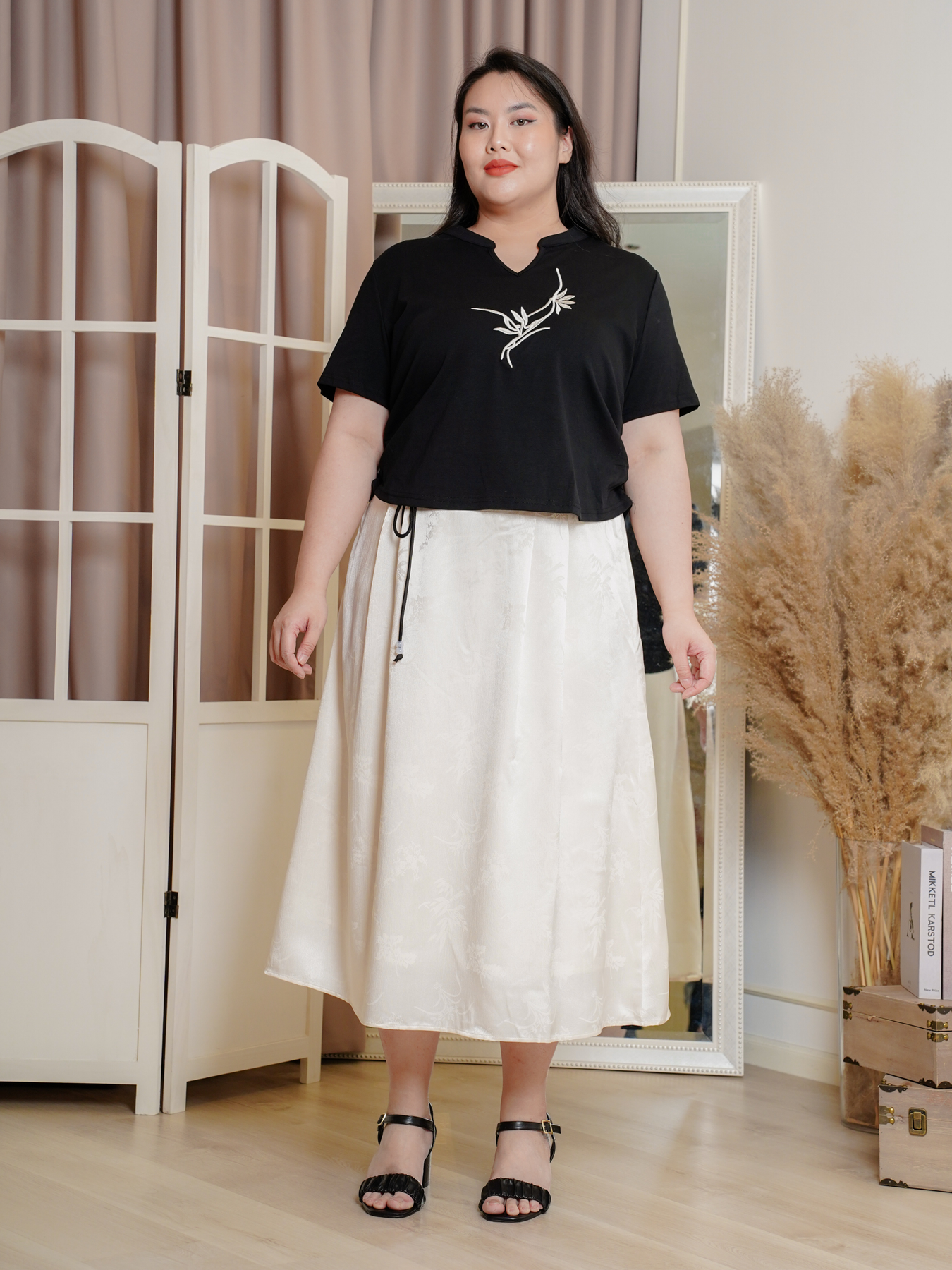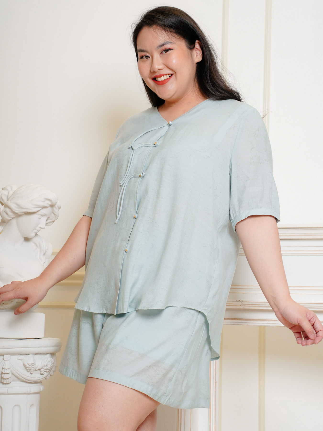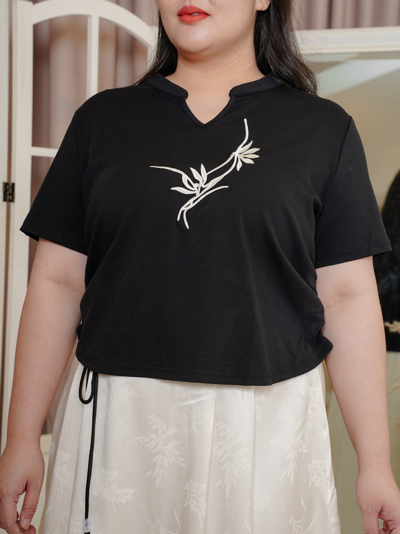 Model (wearing white) wears size 4XL.