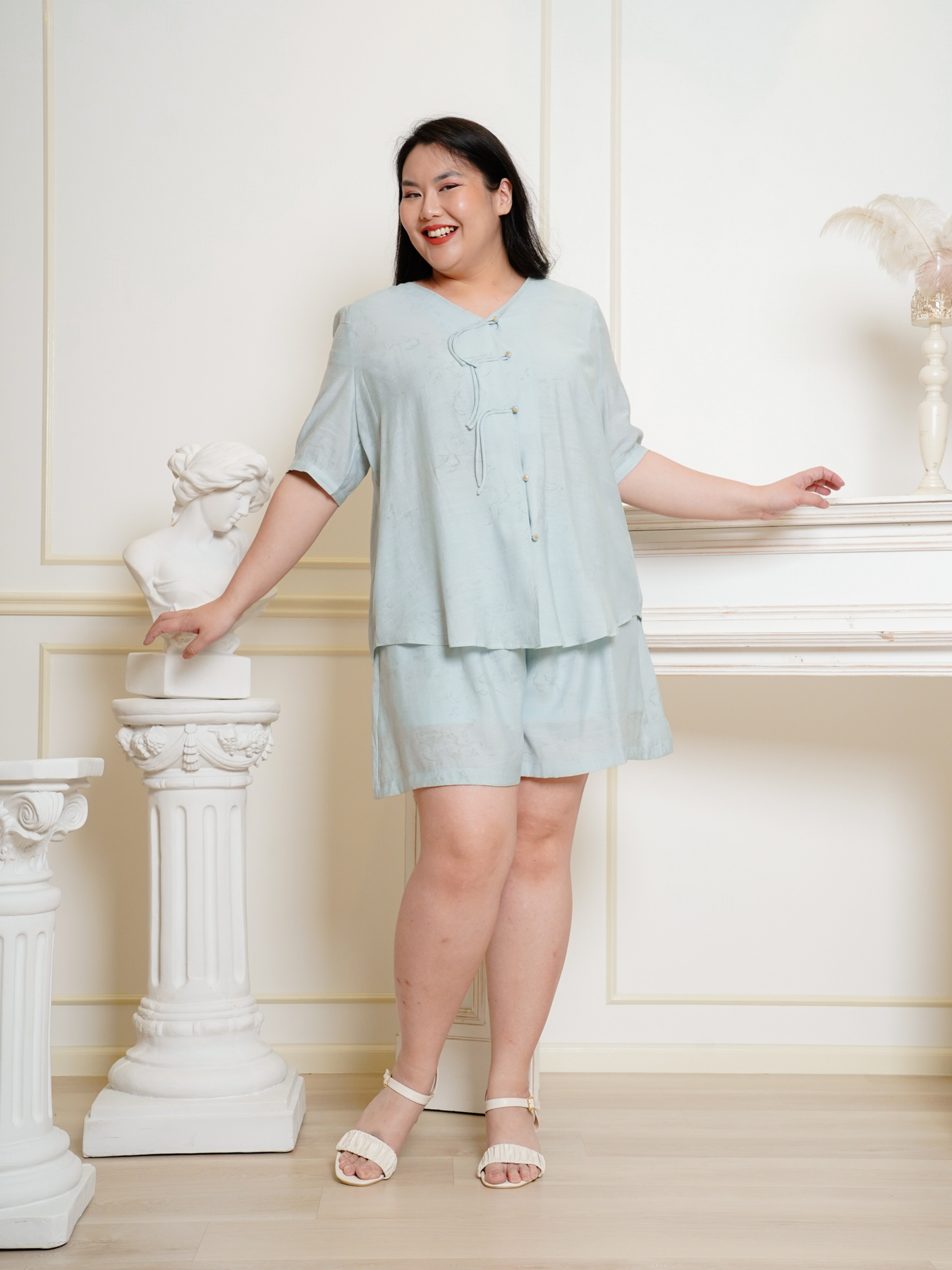 Height 170cm, Bust 111cm, Waist 98cm, Hips 104cm