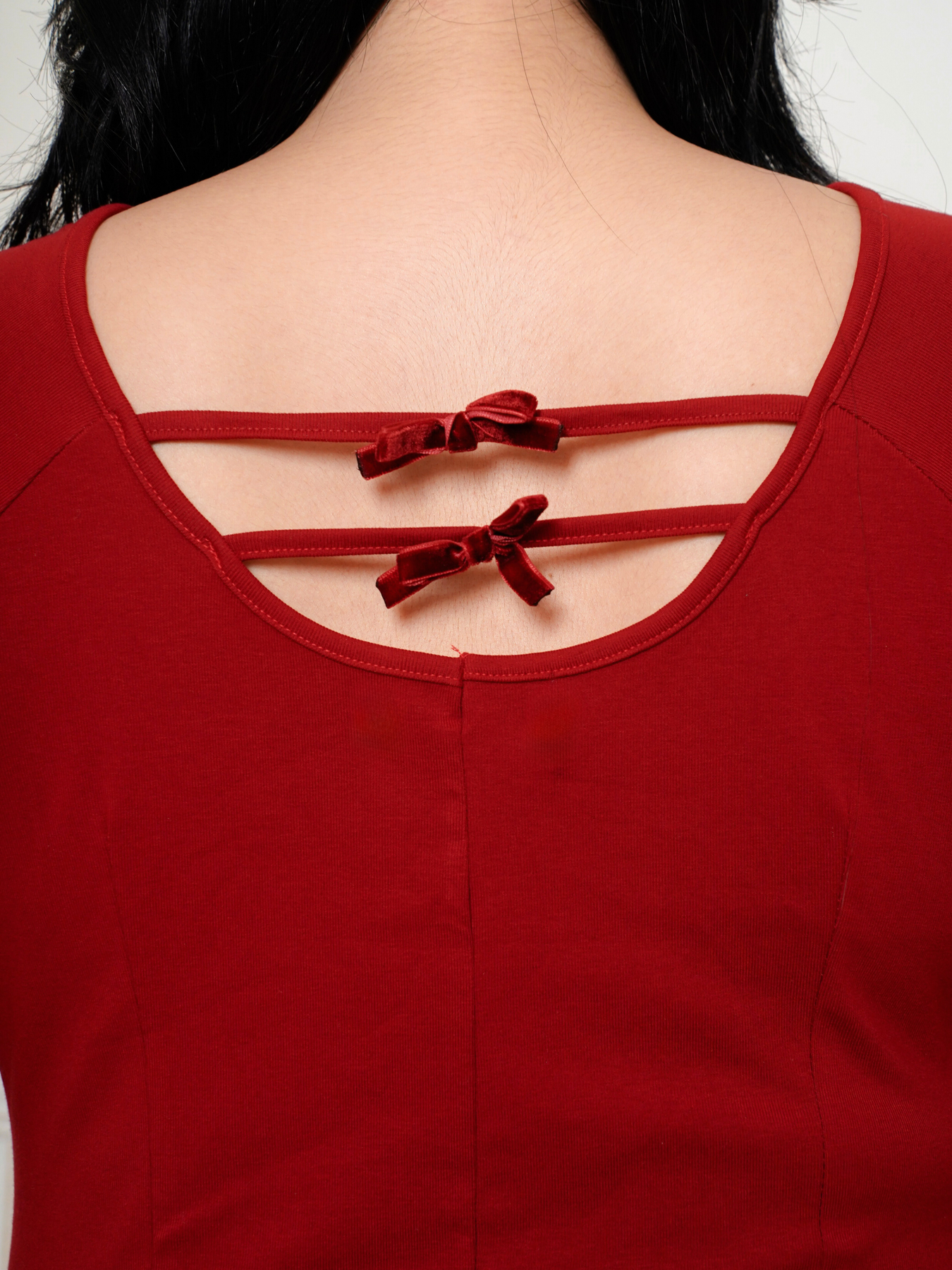 BROOKE Wine Red Back Ribbon Maxi Dress