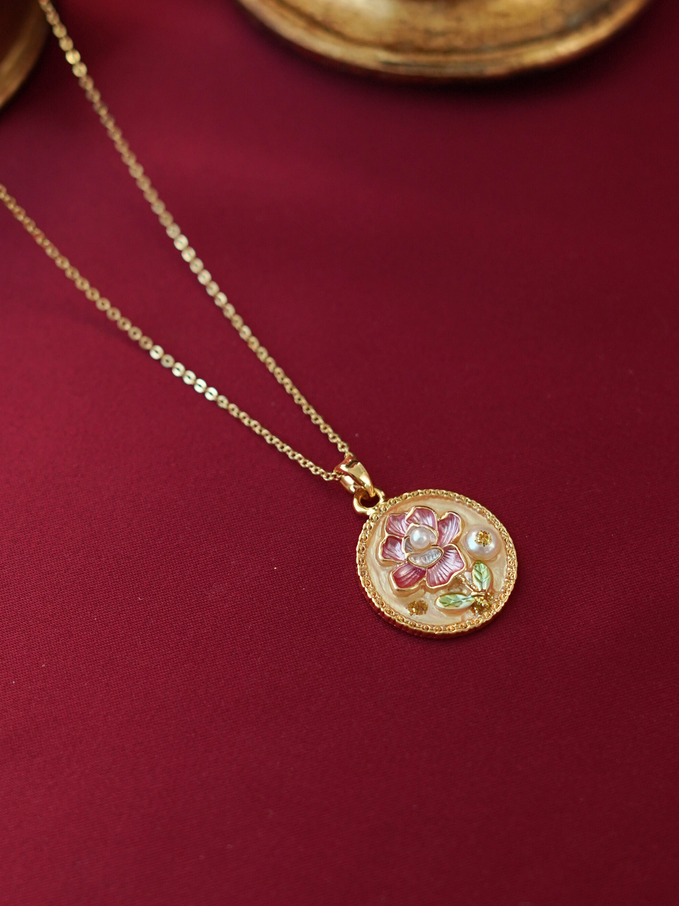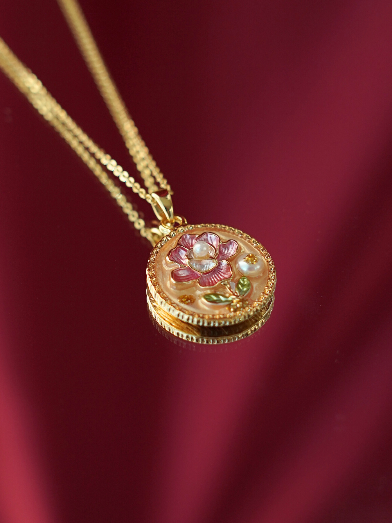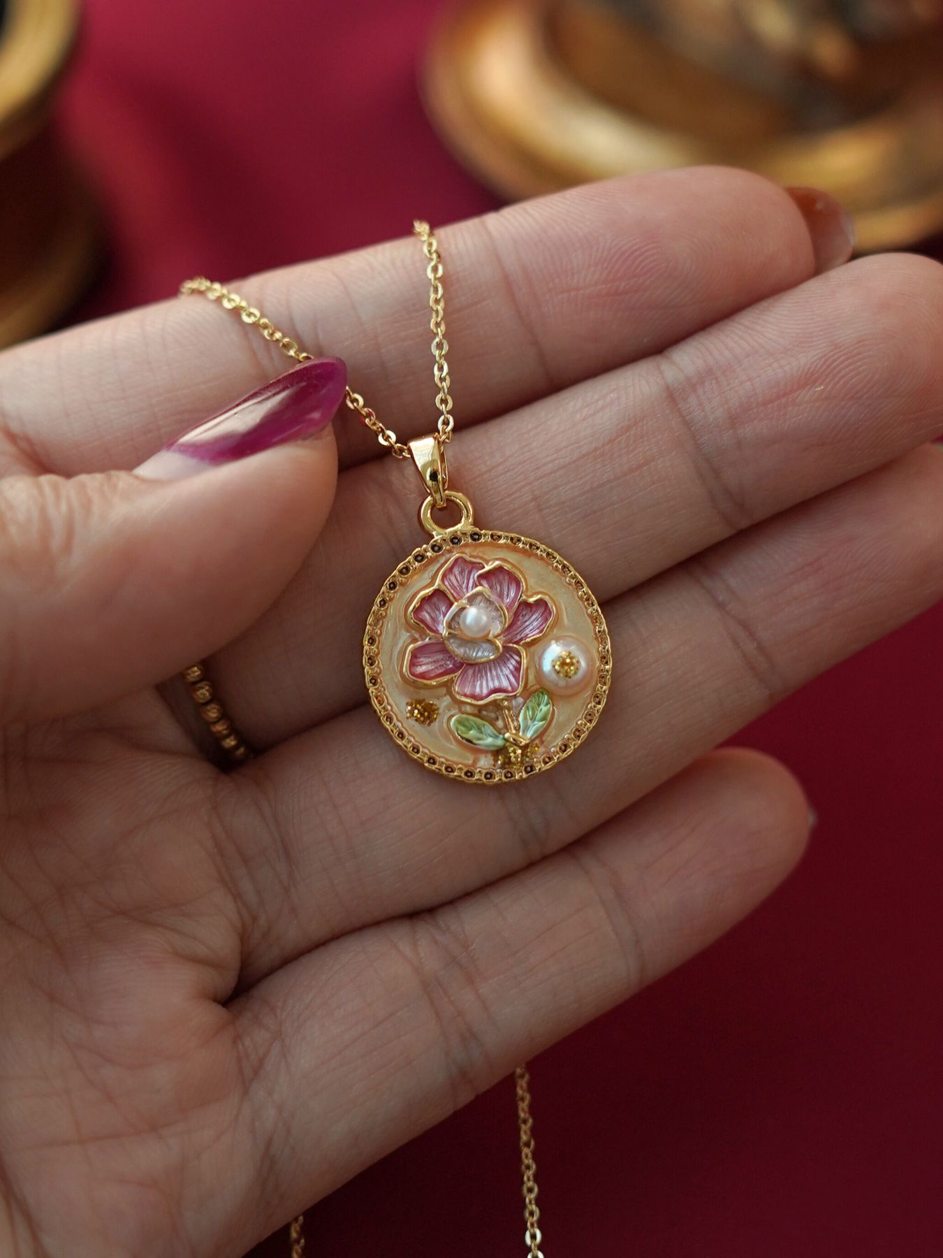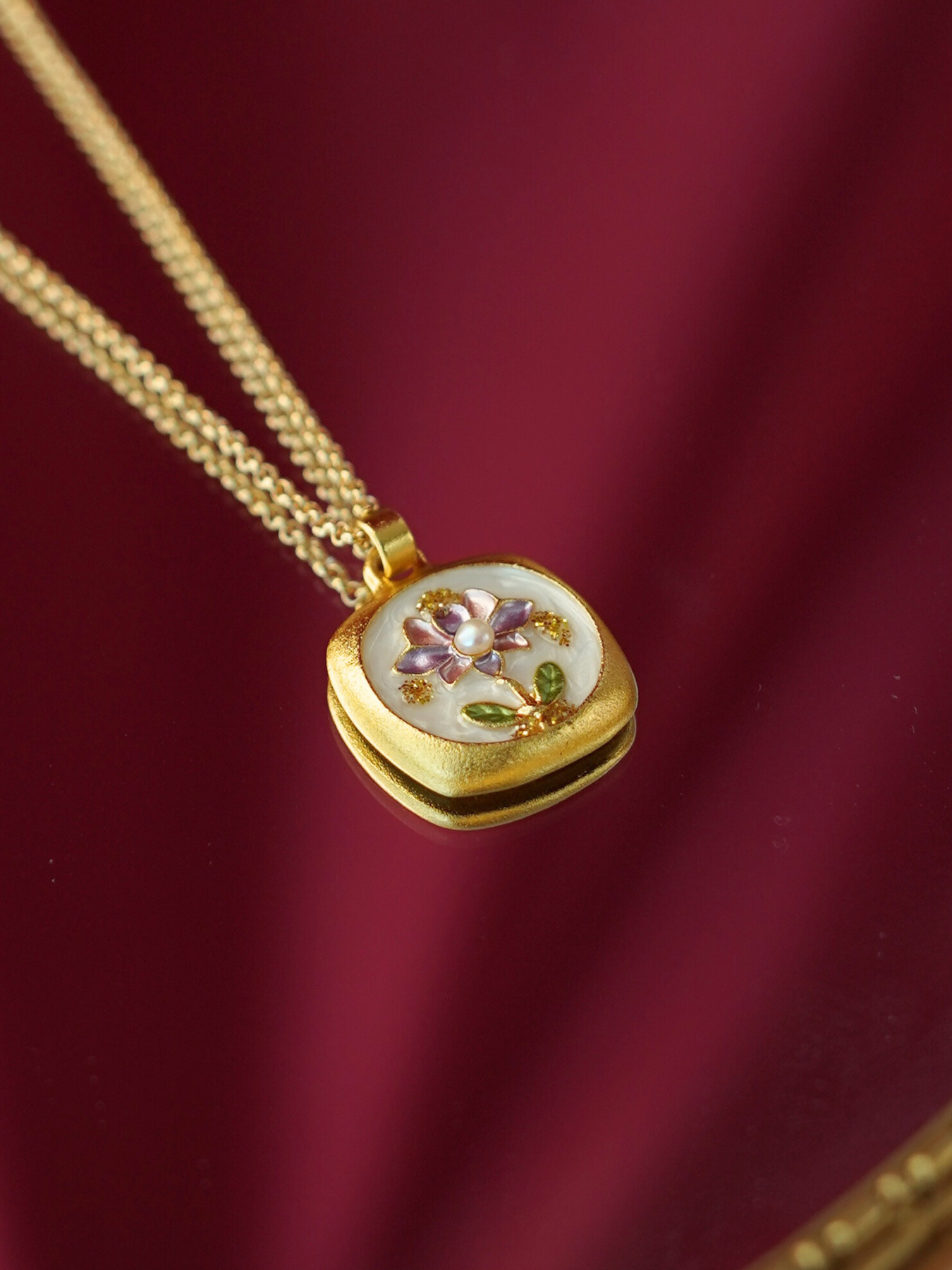 • Pendant: Features enamel detailing + freshwater pearl accents
