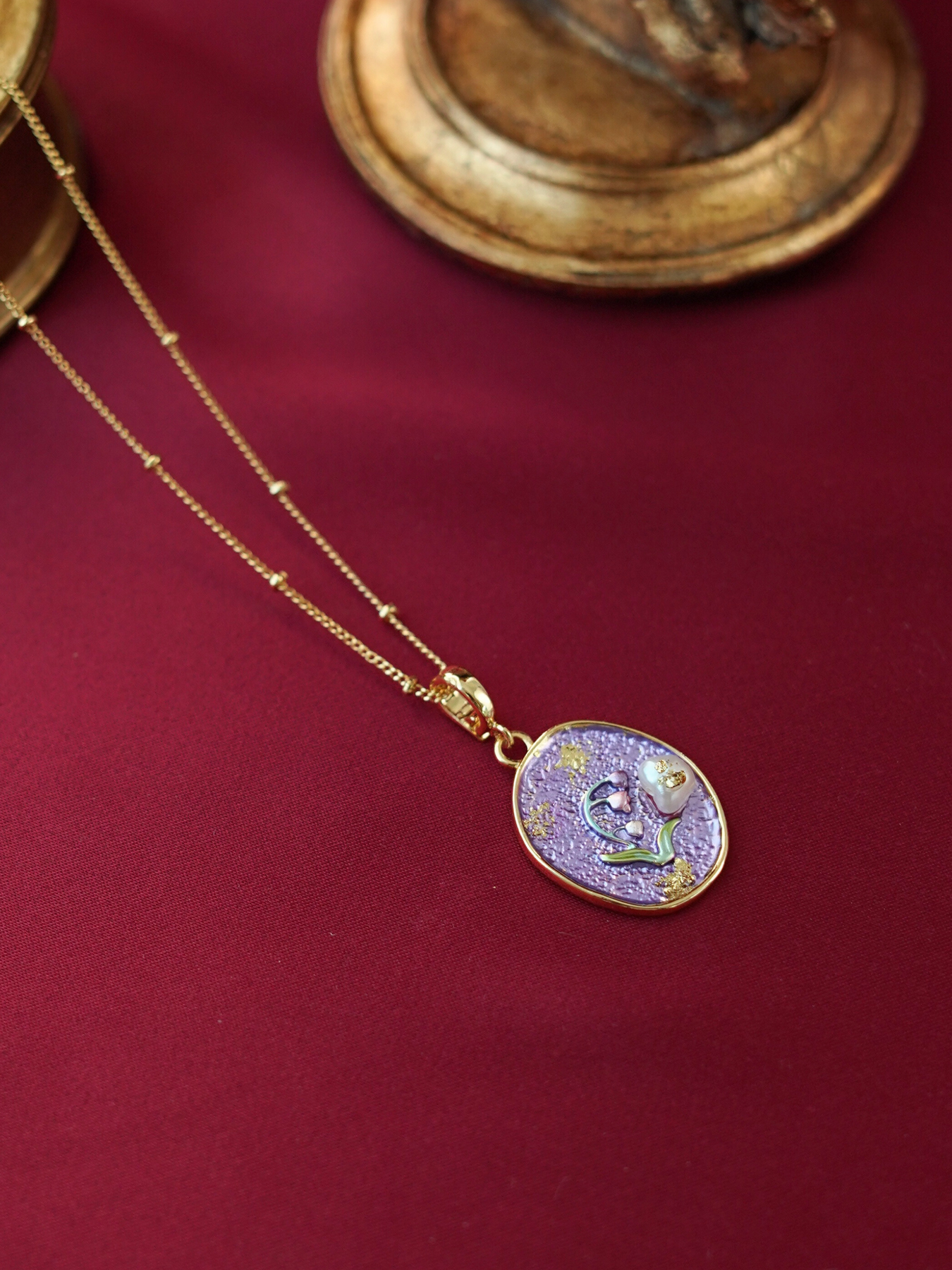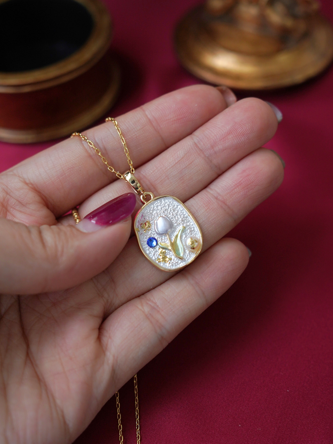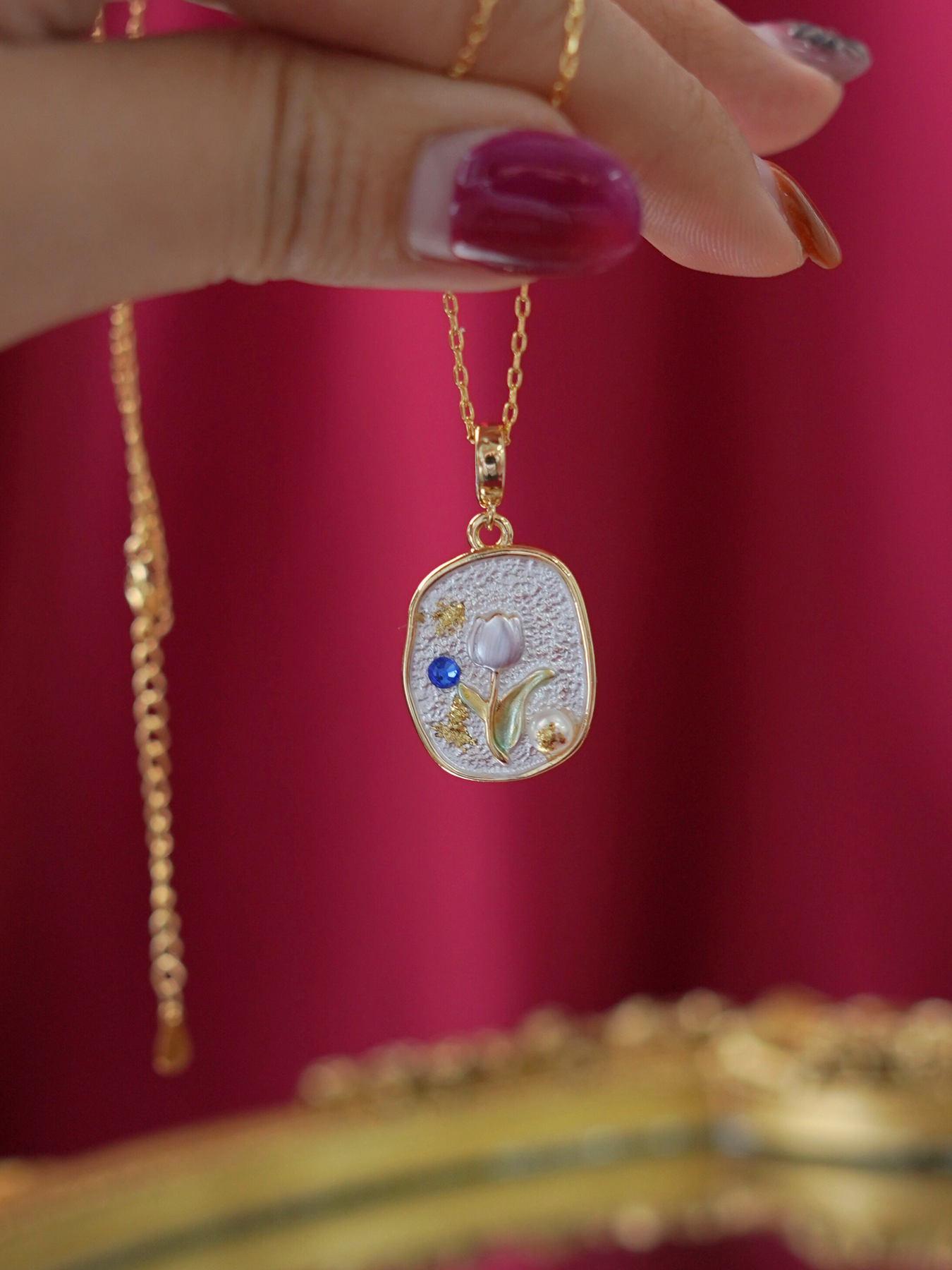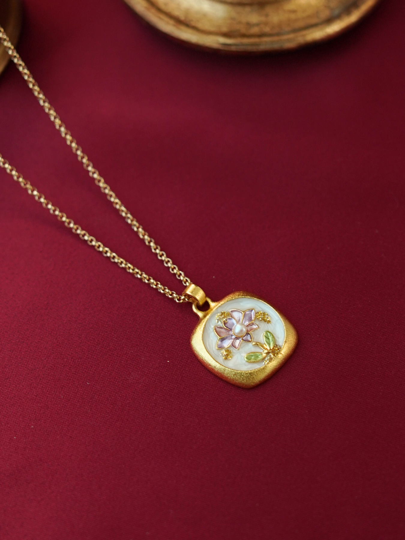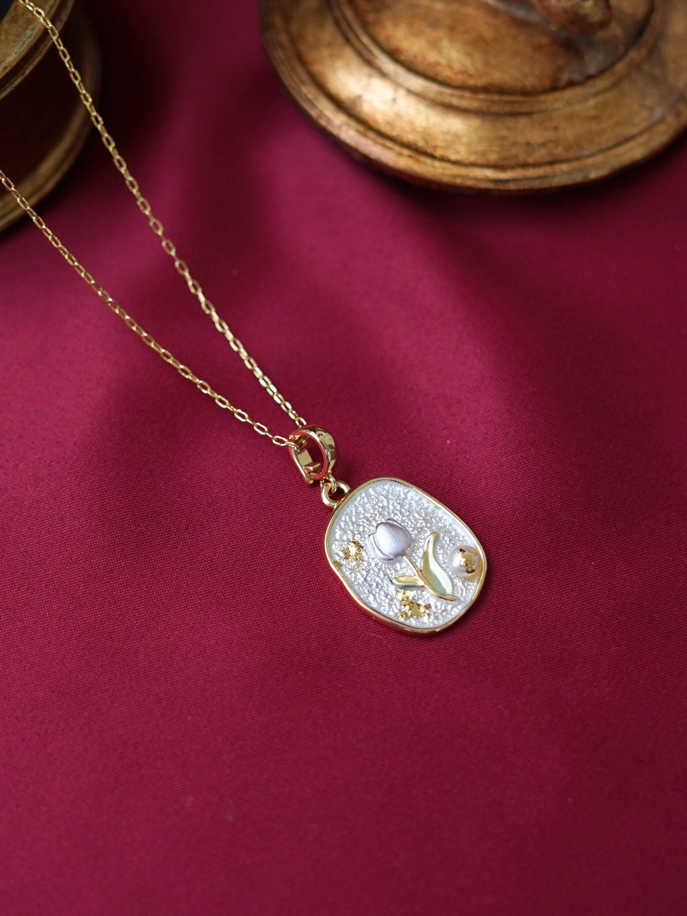 • Pendant: Features enamel detailing + freshwater pearl accents