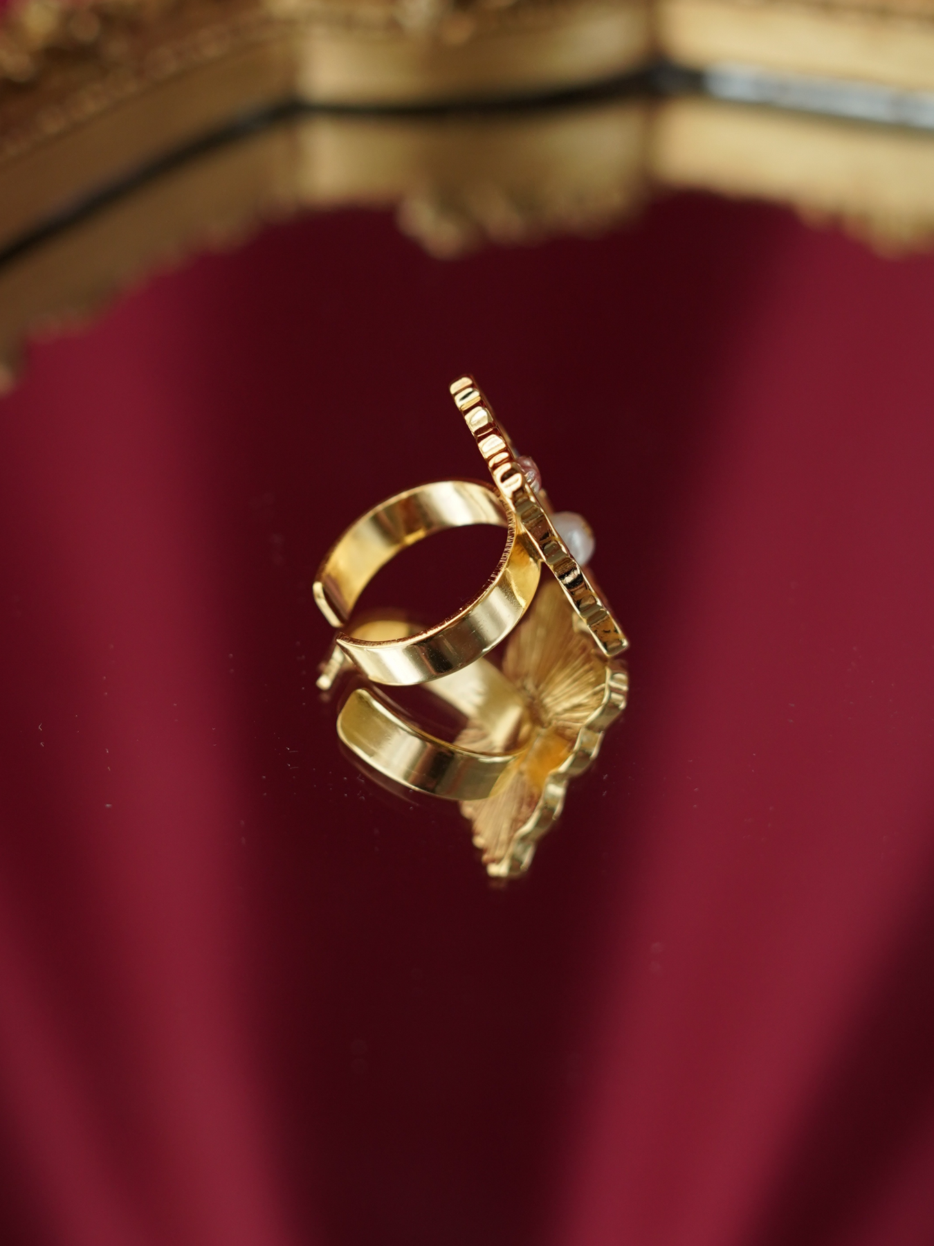 C&C Gold Plated Pearls Adjustable Ring CCRIN05