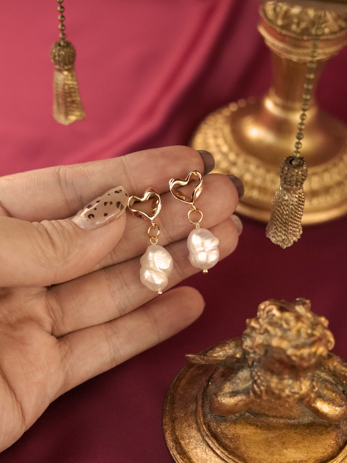 Each piece balances classic pearls with artistic enamel textures, creating a soft glow that feels both elegant and modern.