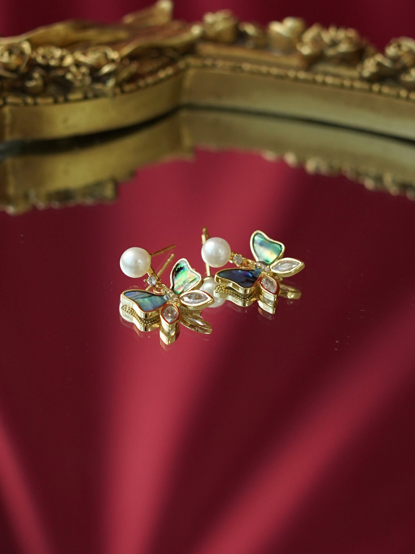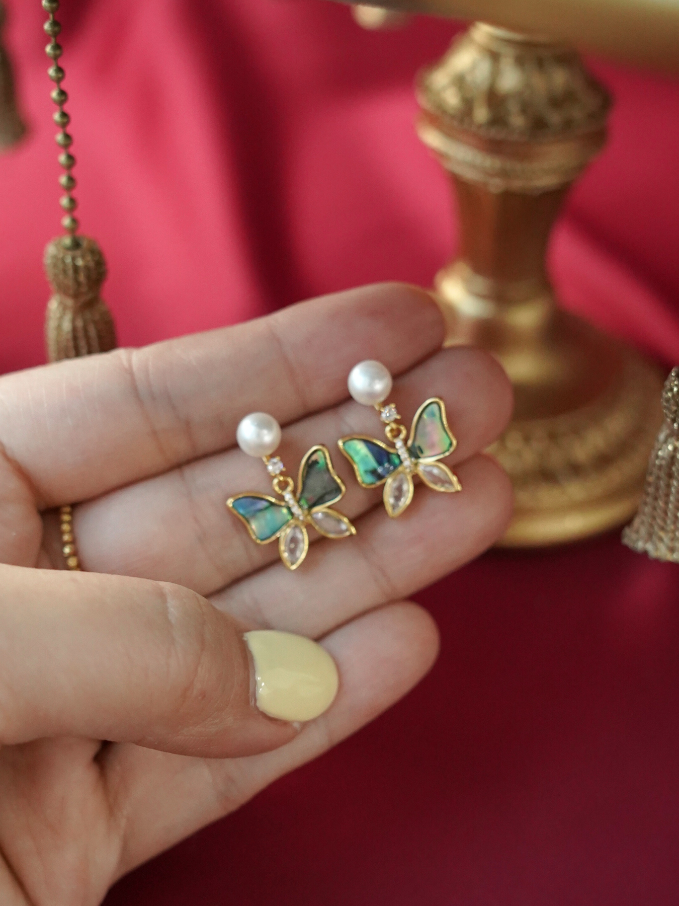 C&C Butterfly Abalone Shell Pearls Earrings CCEAR28
