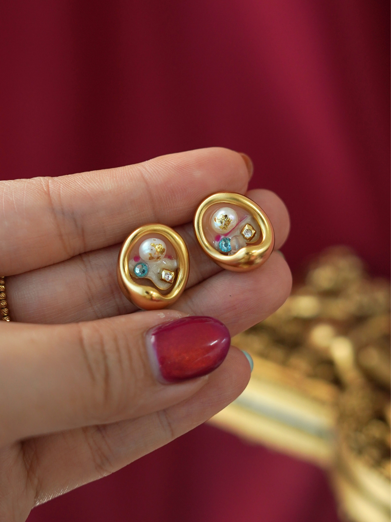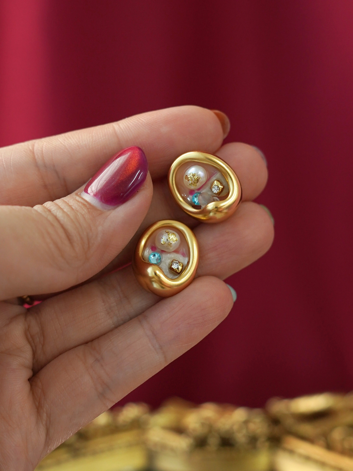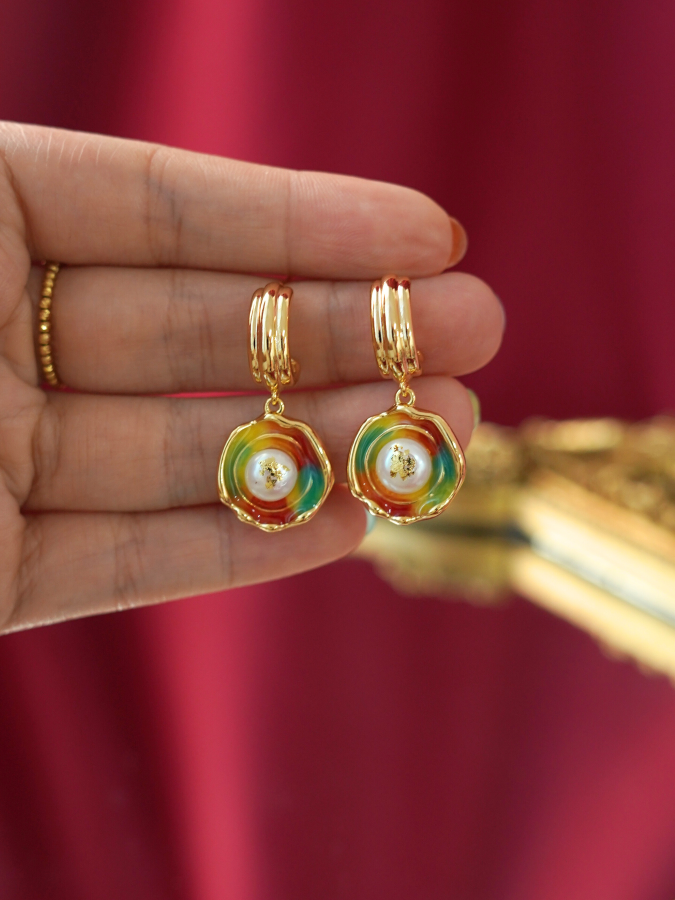 Each piece balances classic pearls with artistic enamel textures, creating a soft glow that feels both elegant and modern.