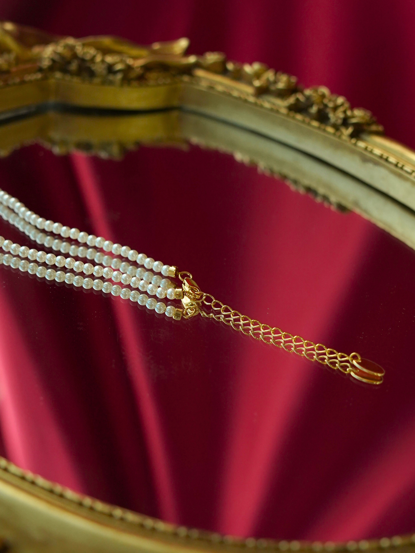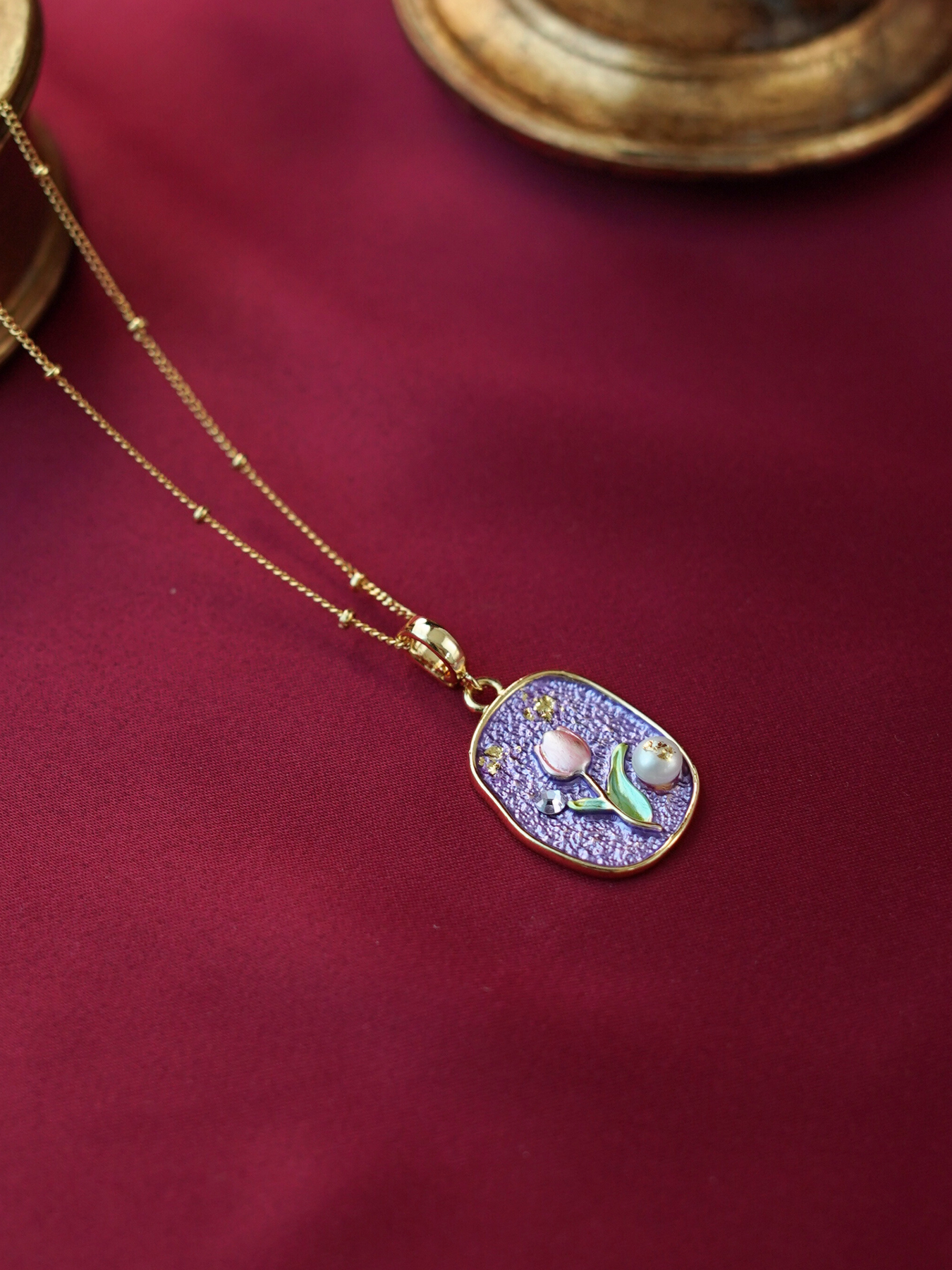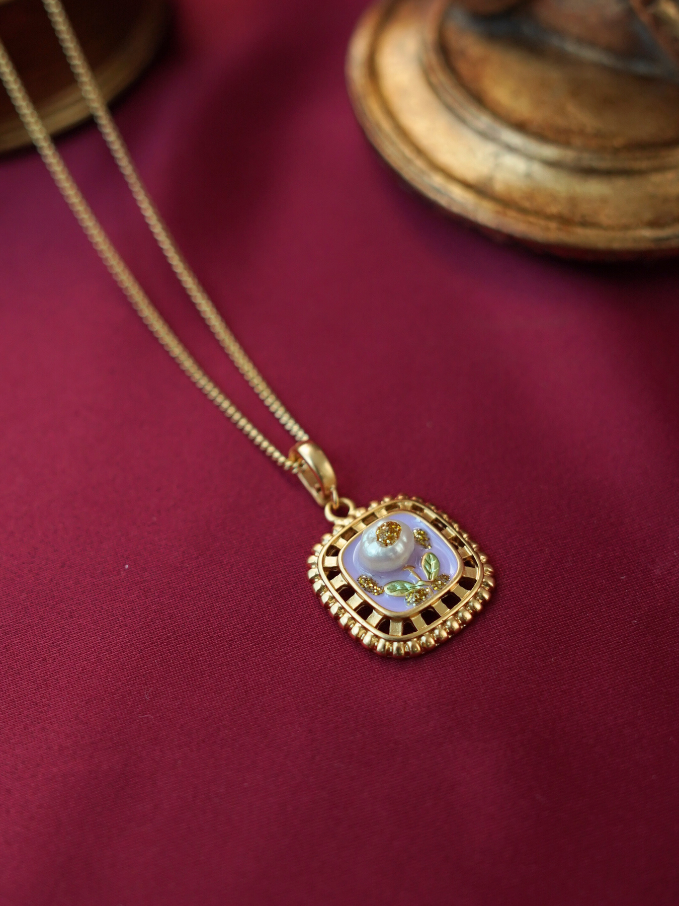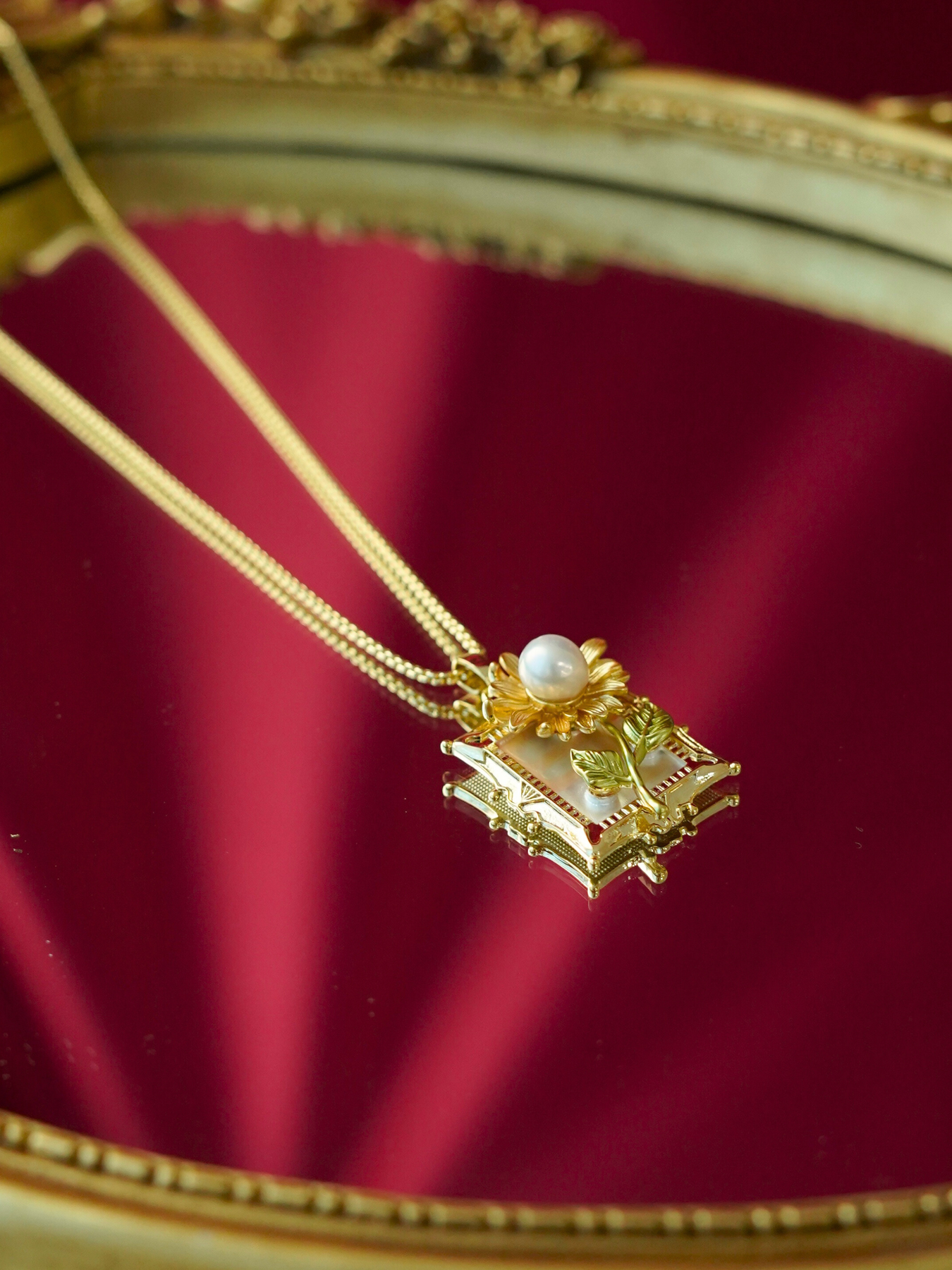 • Detailing: full pearls necklace & enamel