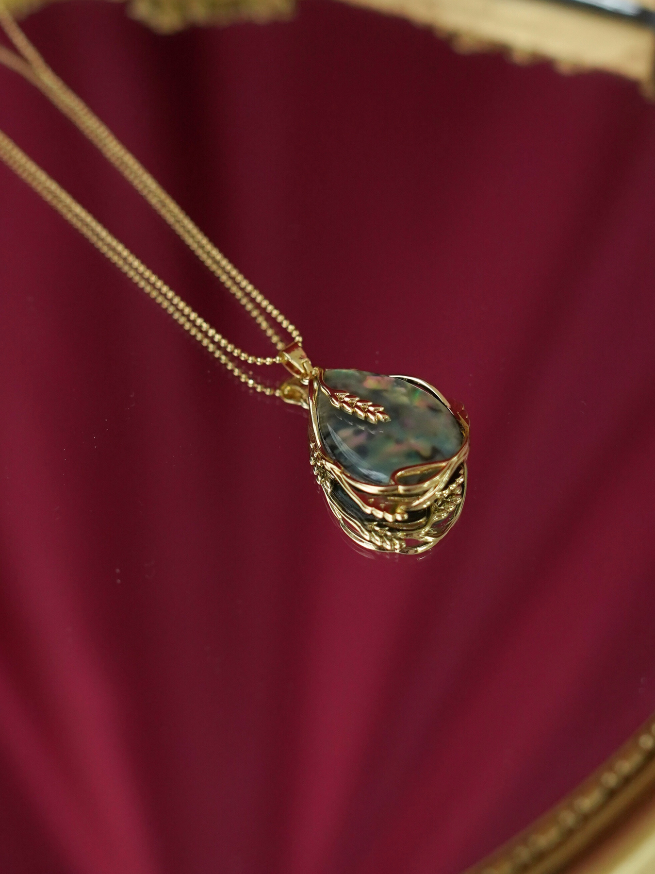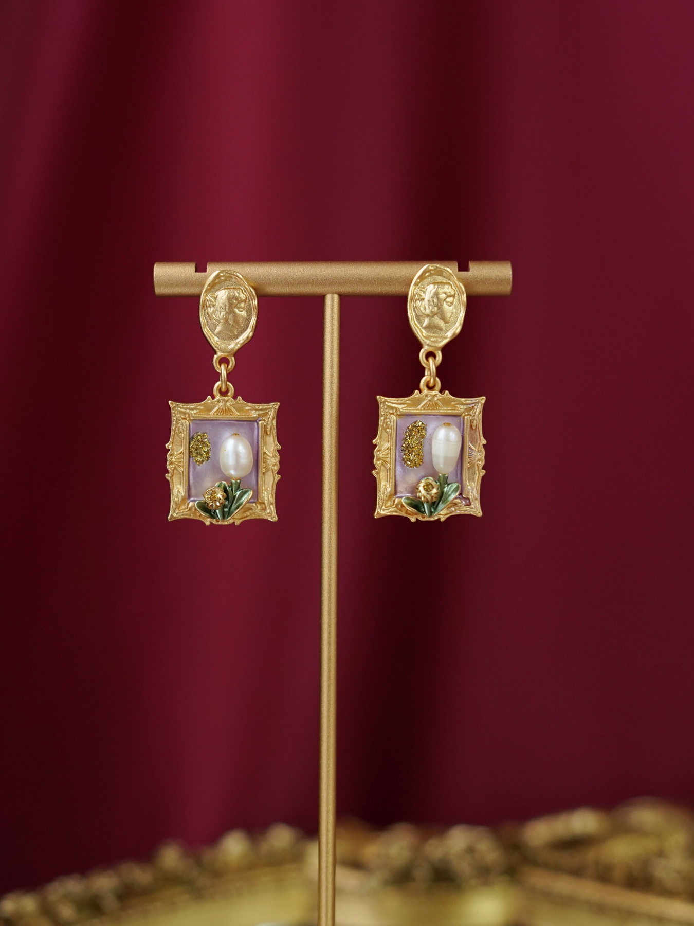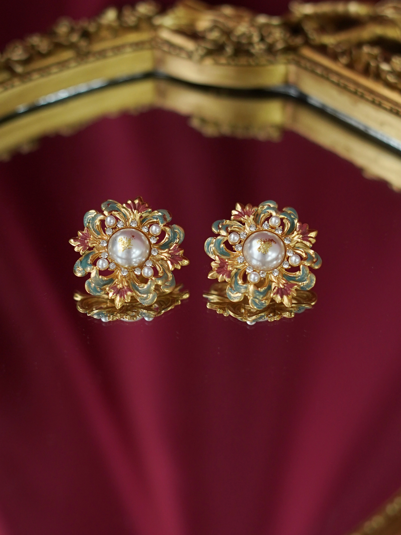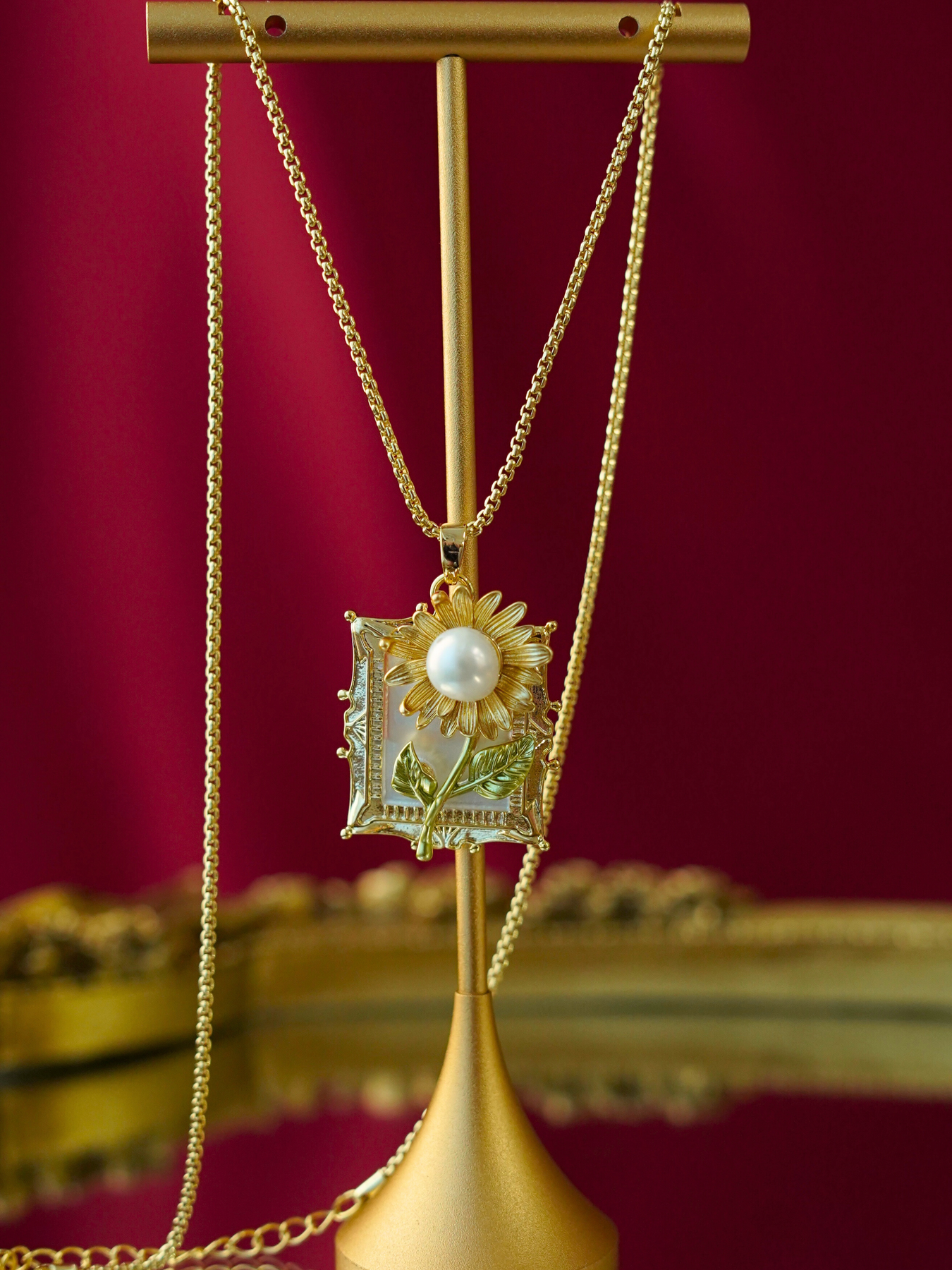 • Detailing: full pearls necklace & enamel