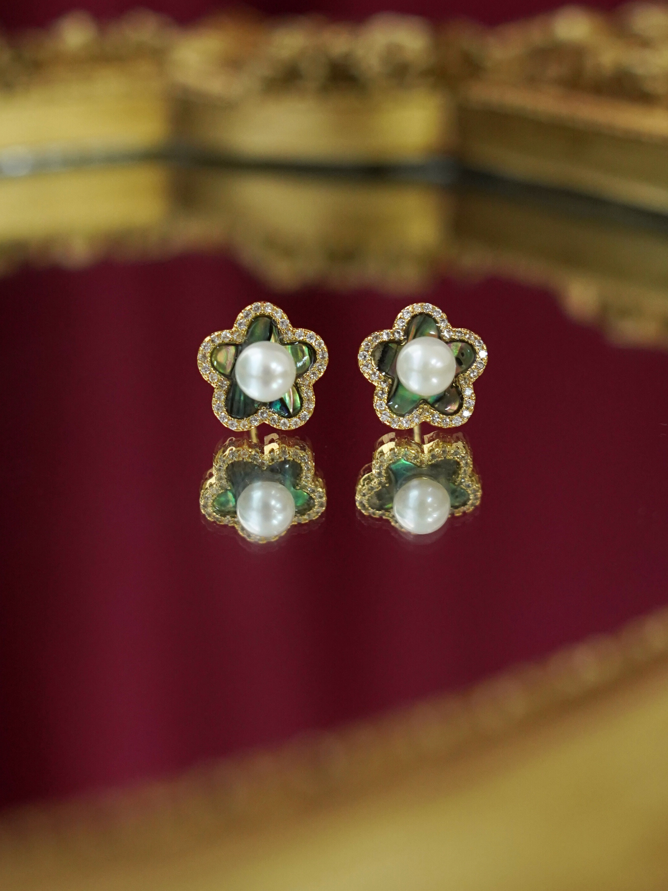C&C Abalone Shell Flower With Pearls Earrings CCEAR10