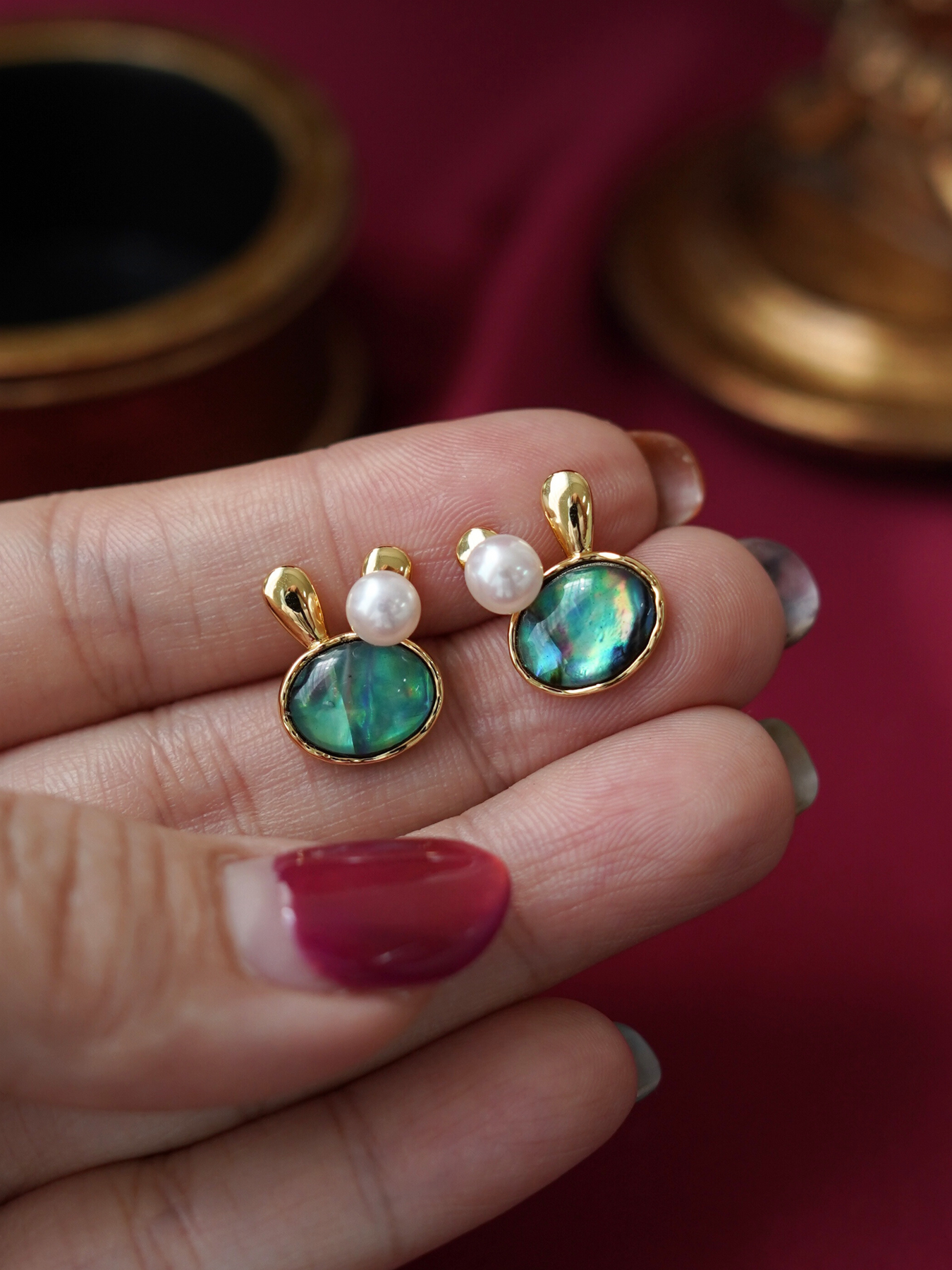 C&C Abalone Shell Rabbit Pearls Earrings CCEAR09