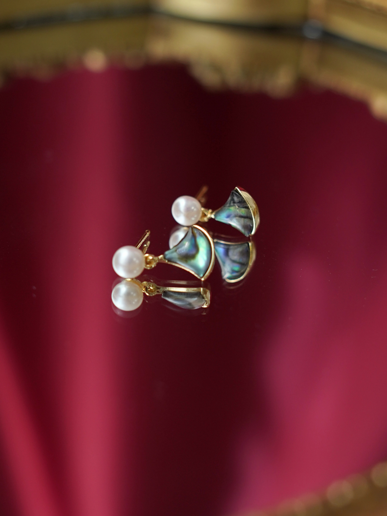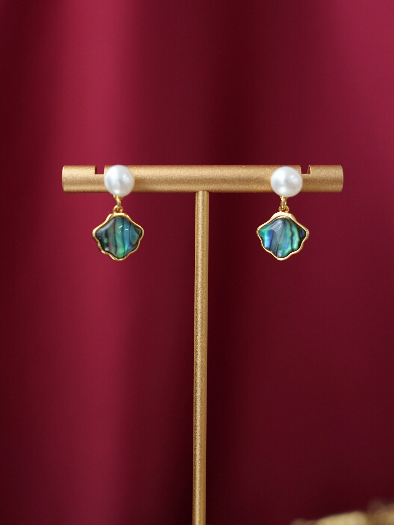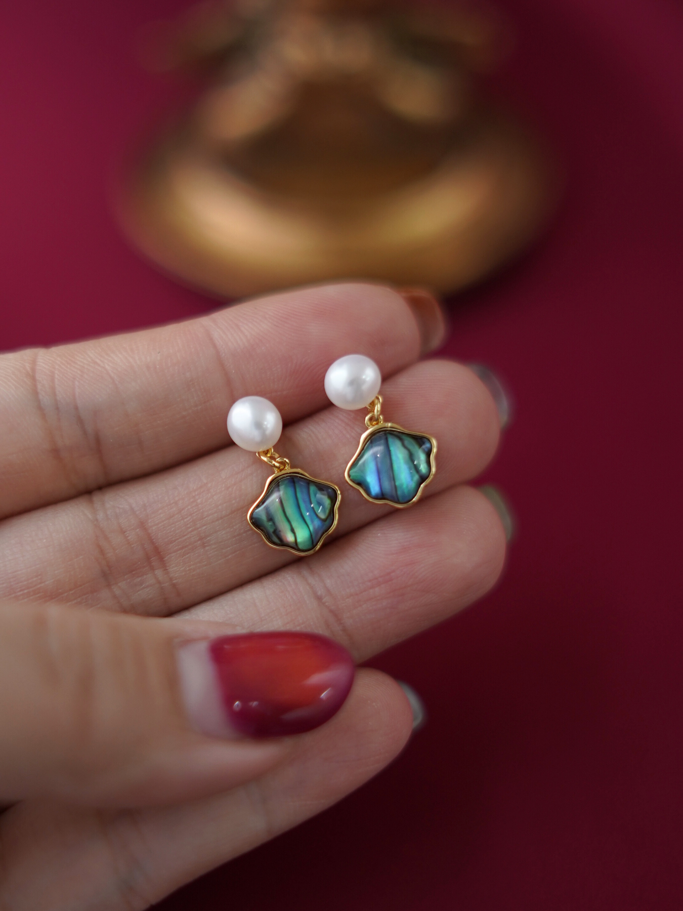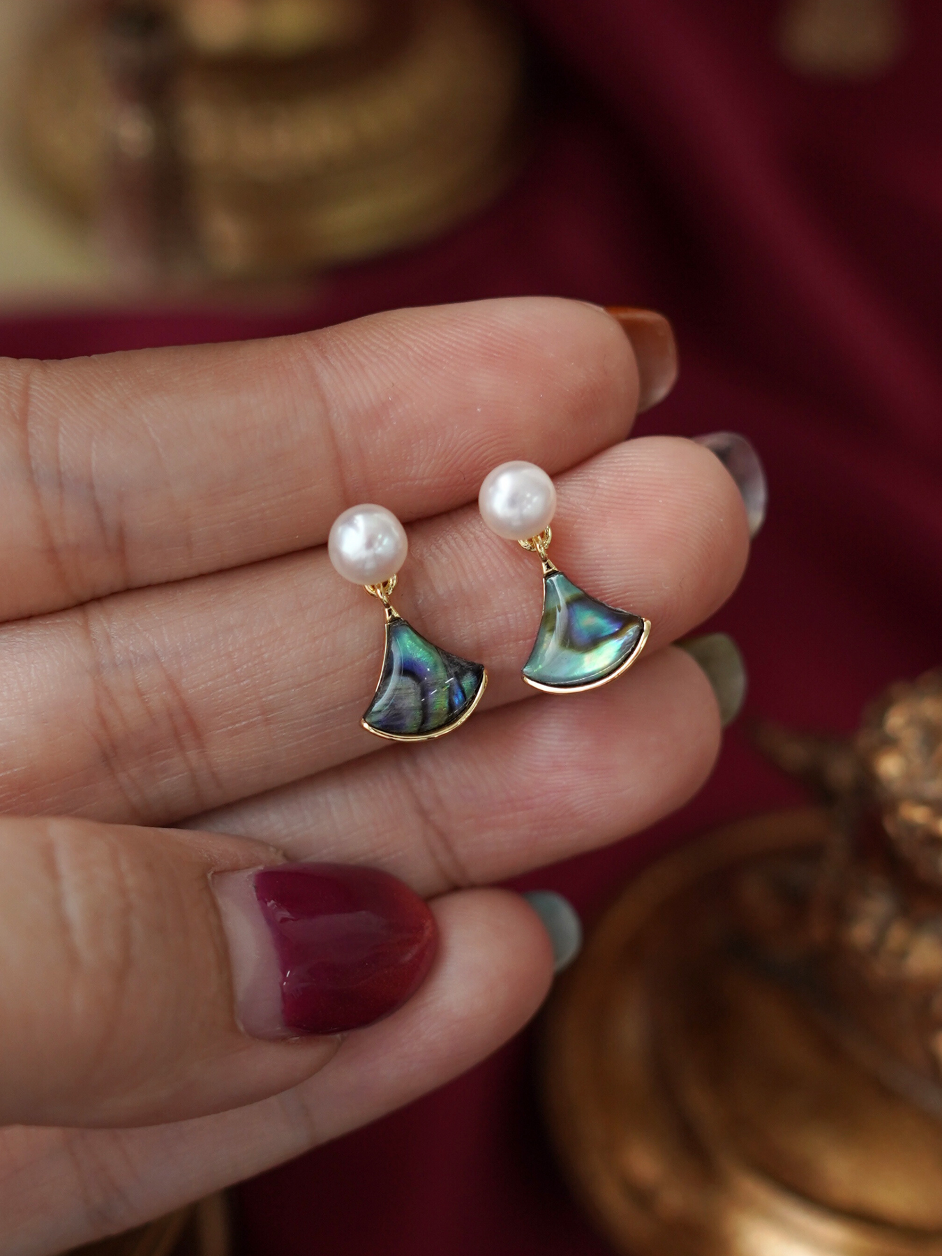 Inspired by the ocean’s natural beauty, these earrings feature iridescent abalone shell accents paired with freshwater pearls, set in 14k gold plated hardware for a luminous, graceful finish.