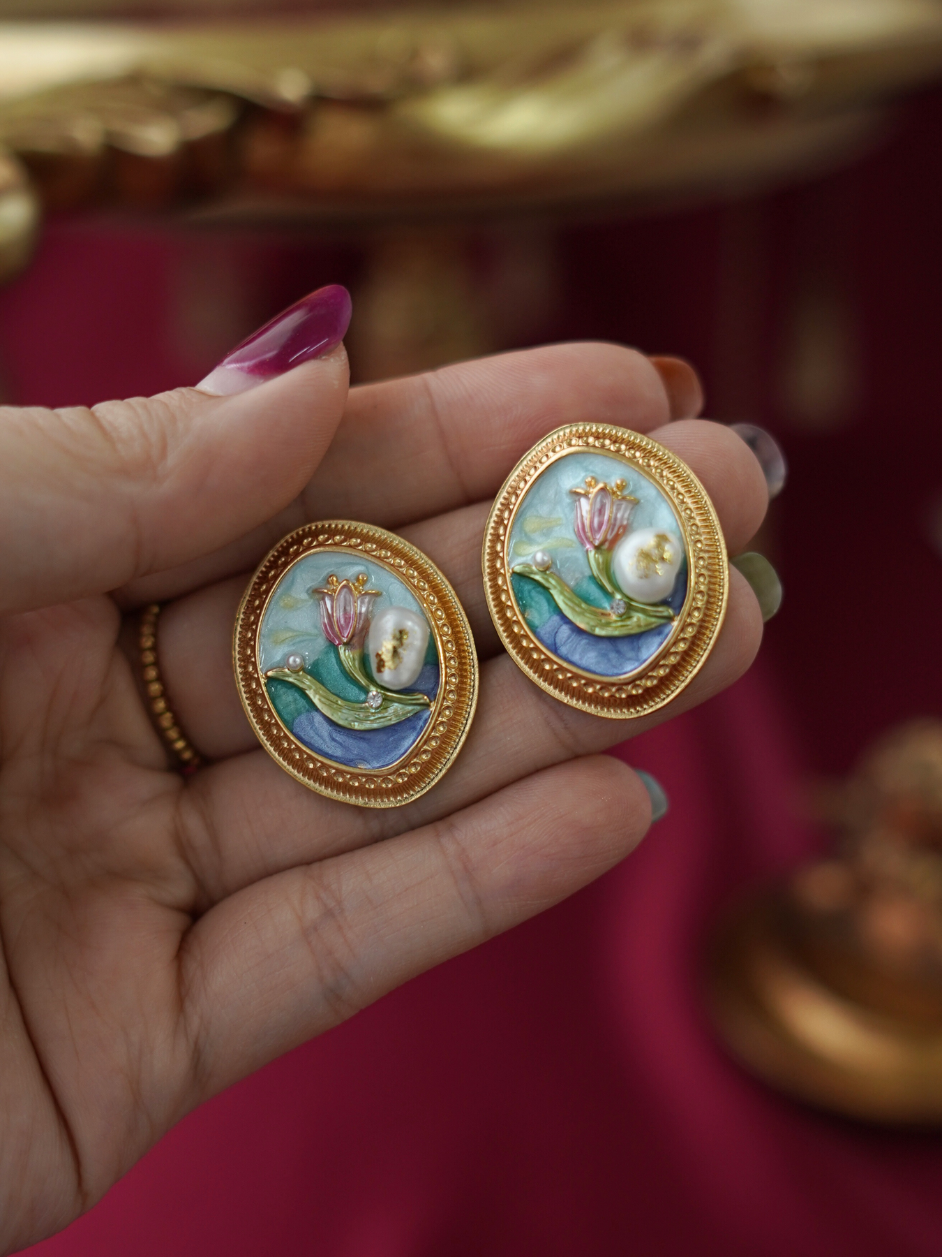 • Each piece is unique due to natural variations in pearl shape and enamel texture