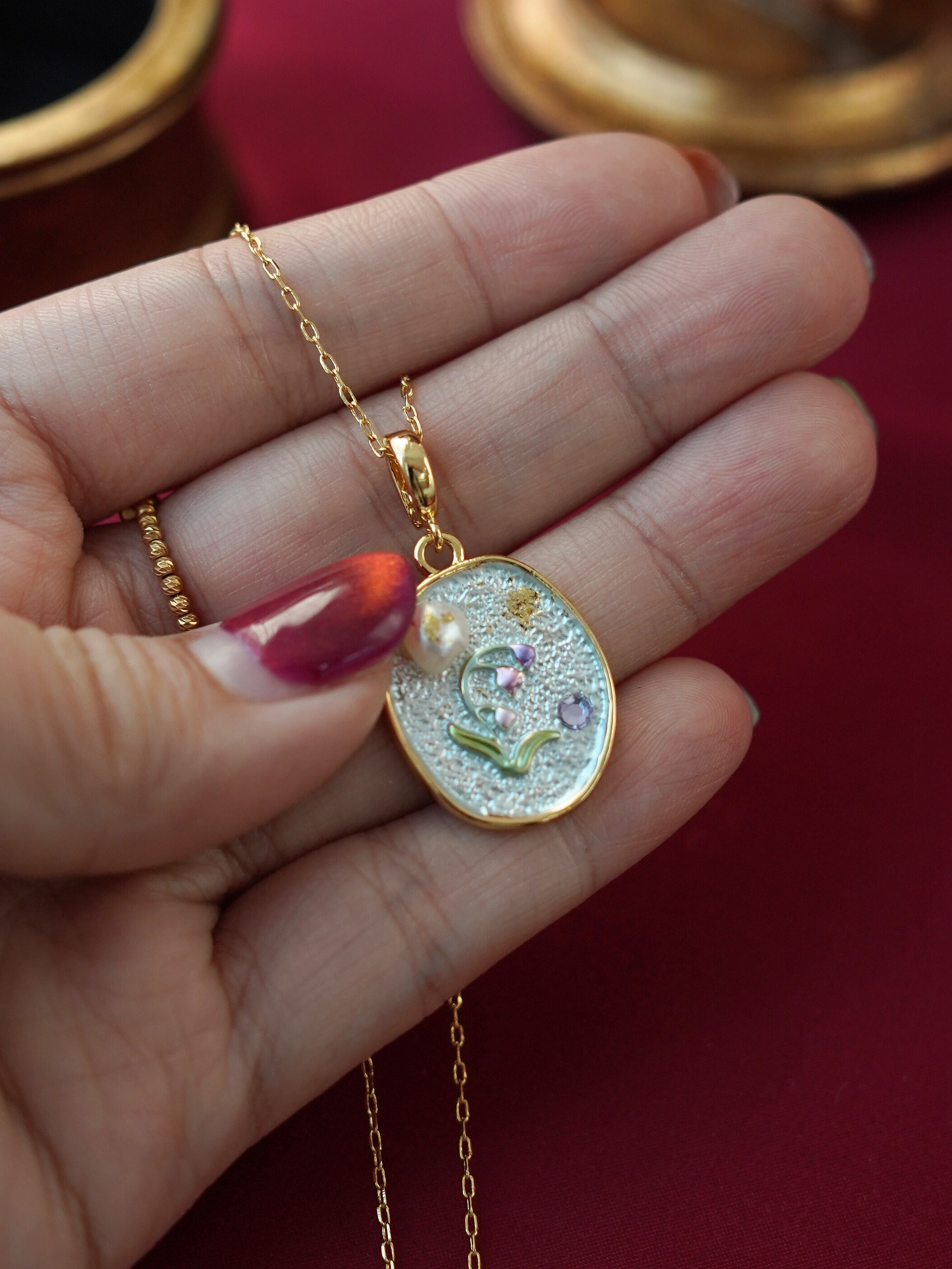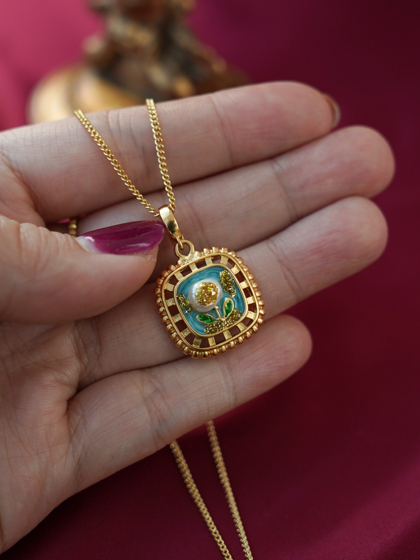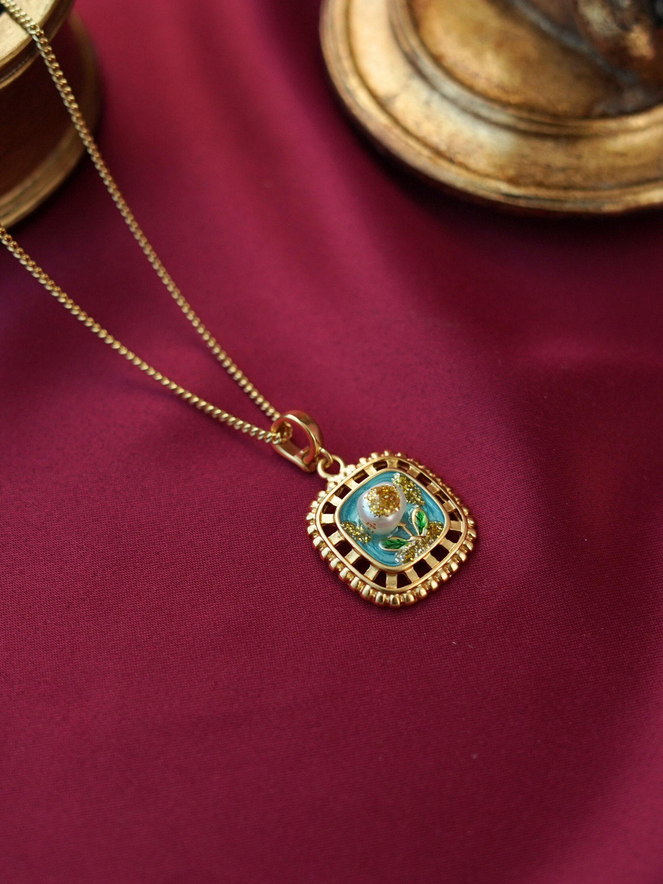 ⢠Material: 14k gold plated brass with enamel finish