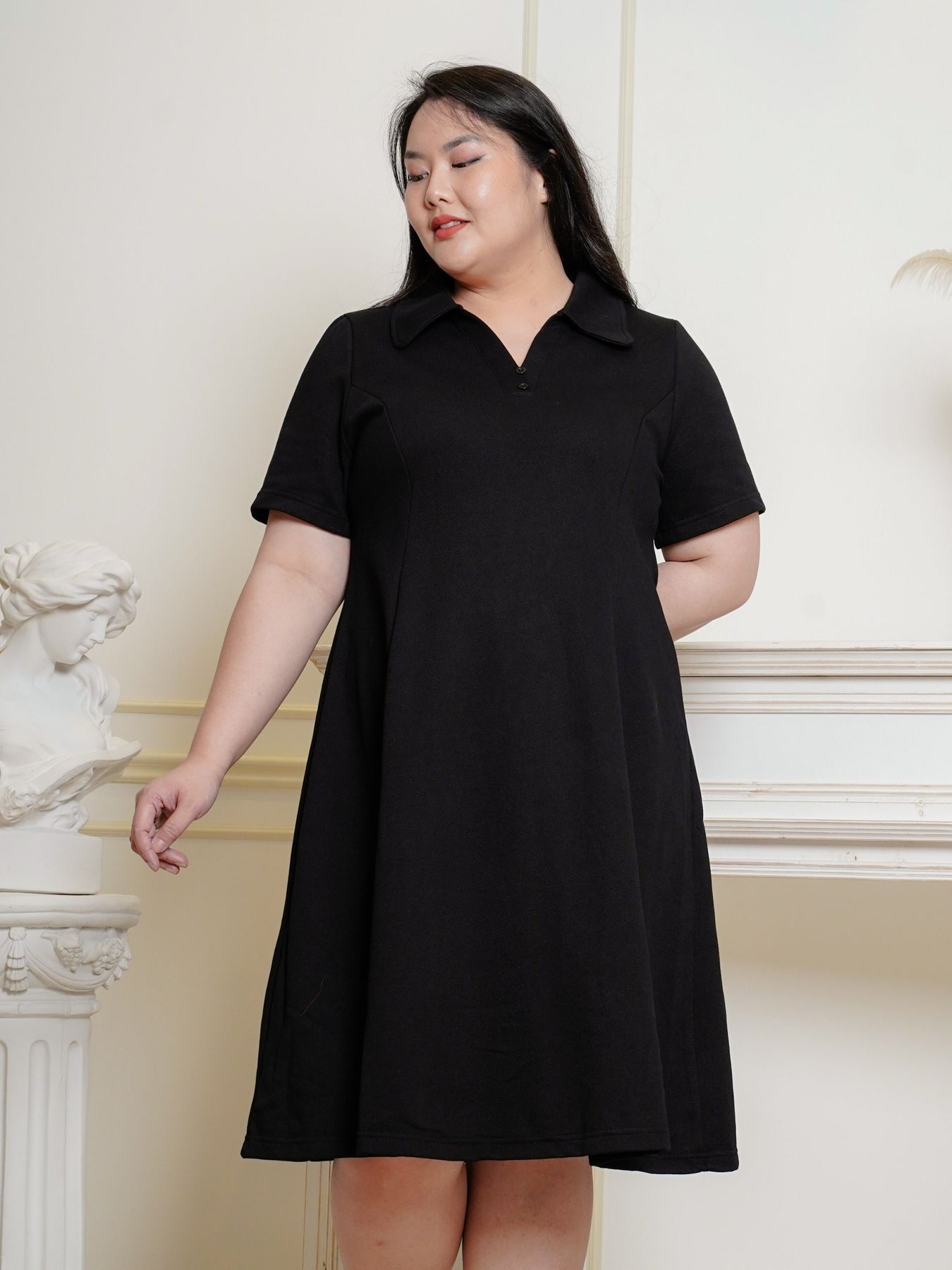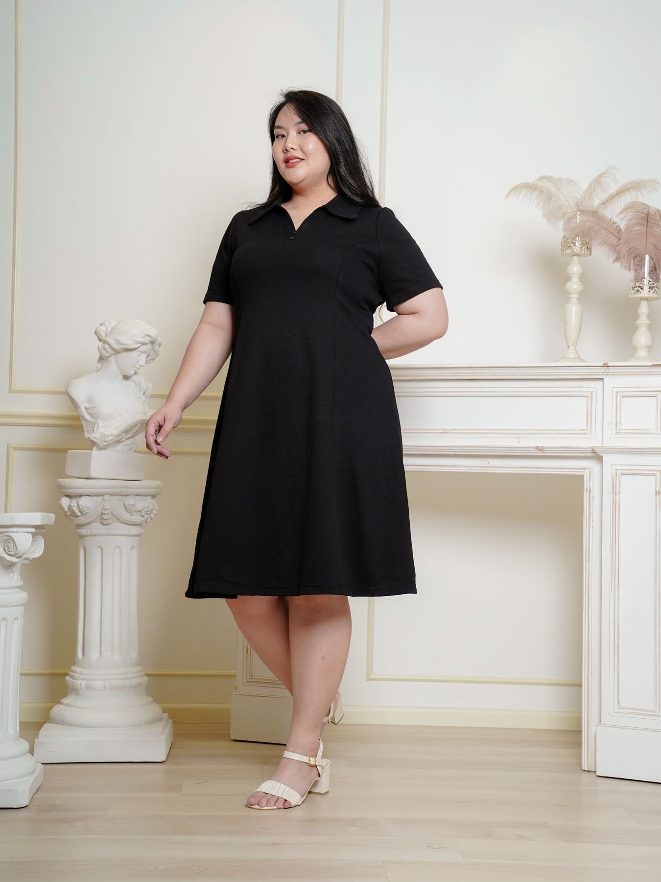LILITH Polo Lapel Collar A-Line Midi Dress